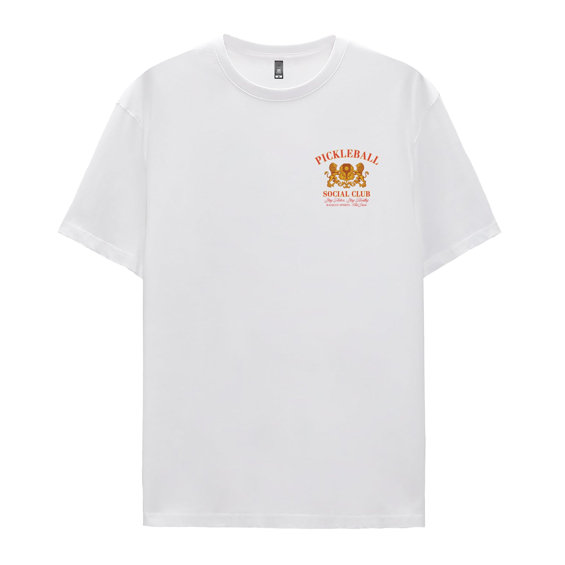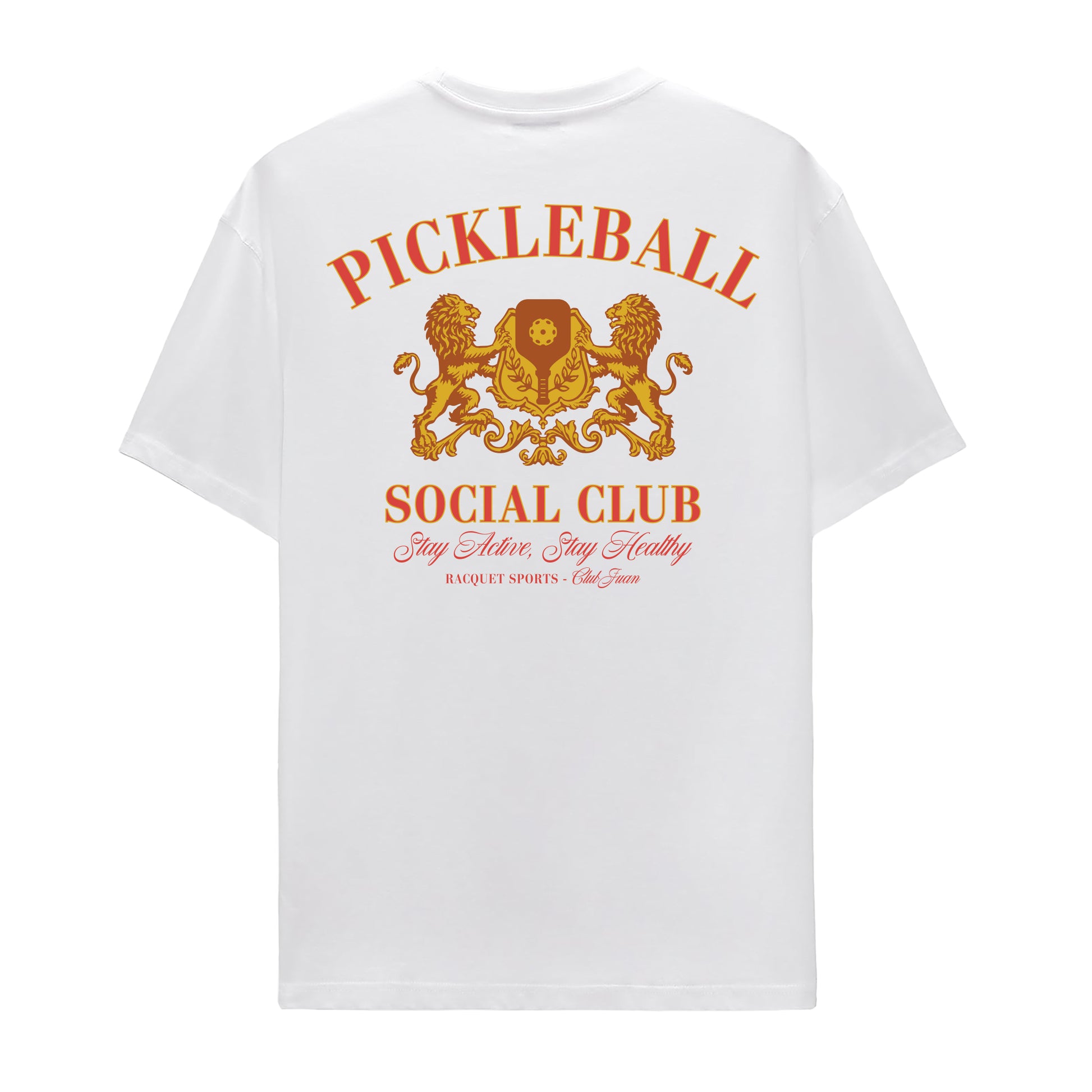 Cotton tee shirt with a ribbed neckline and short sleeves. Features CJ's Pickleball Social Club design printed on front and back.