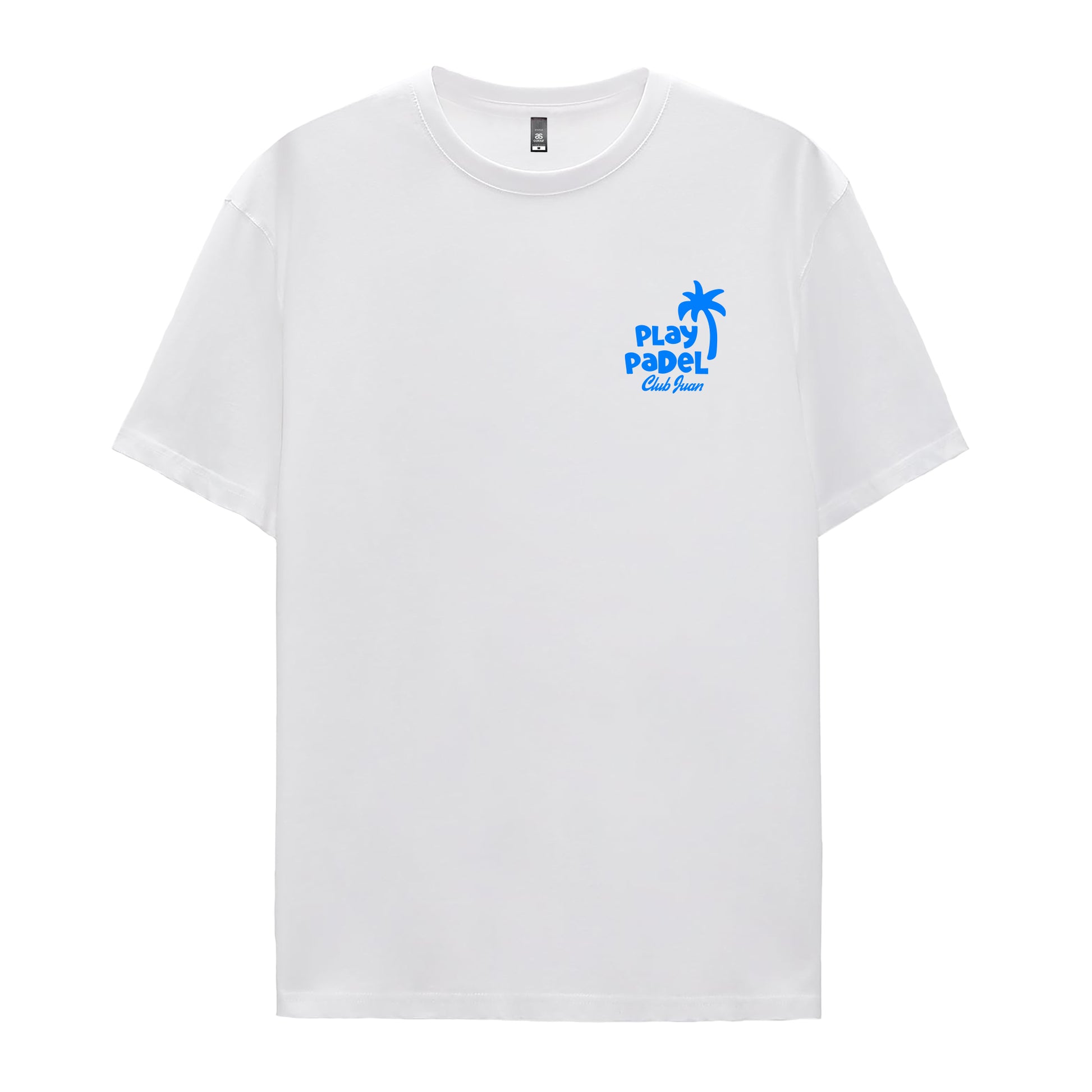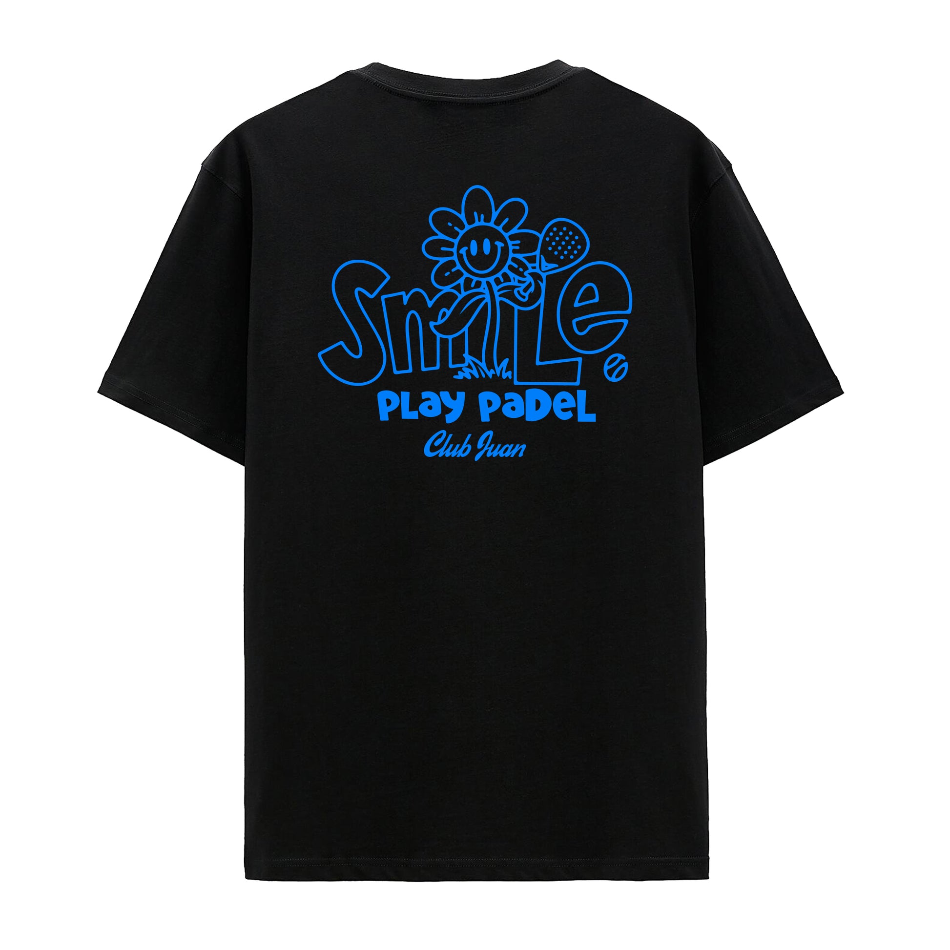 Cotton tee shirt with a ribbed neckline and short sleeves. Features CJ's smile play padel design printed on front and back.
