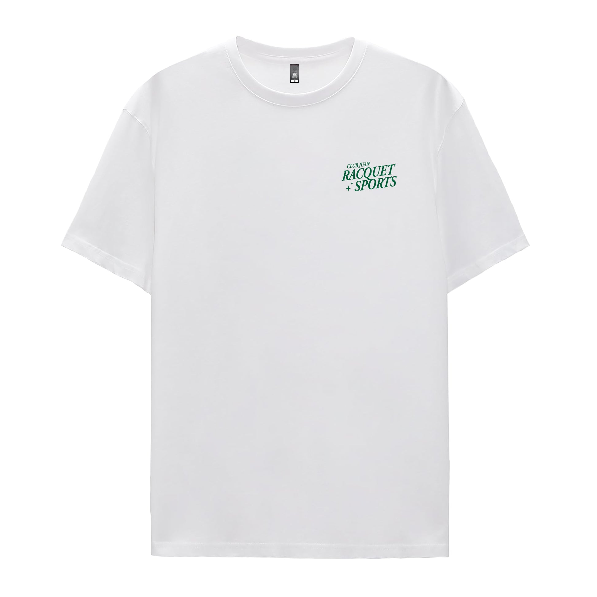 Cotton tee shirt with a ribbed neckline and short sleeves. Features CJ's Swingers Club design printed on front and back.